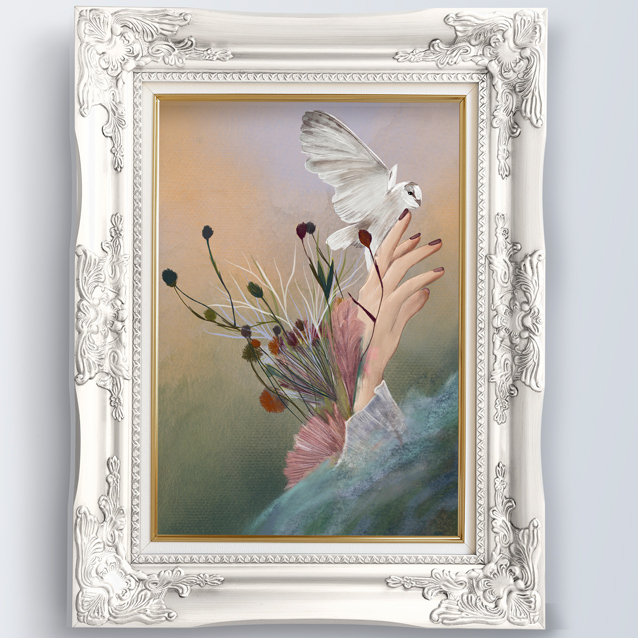 Umetniški odtis visoke kvalitete na 310 g, teksturiran, mat papir, tiskan z arhivskimi barvami.