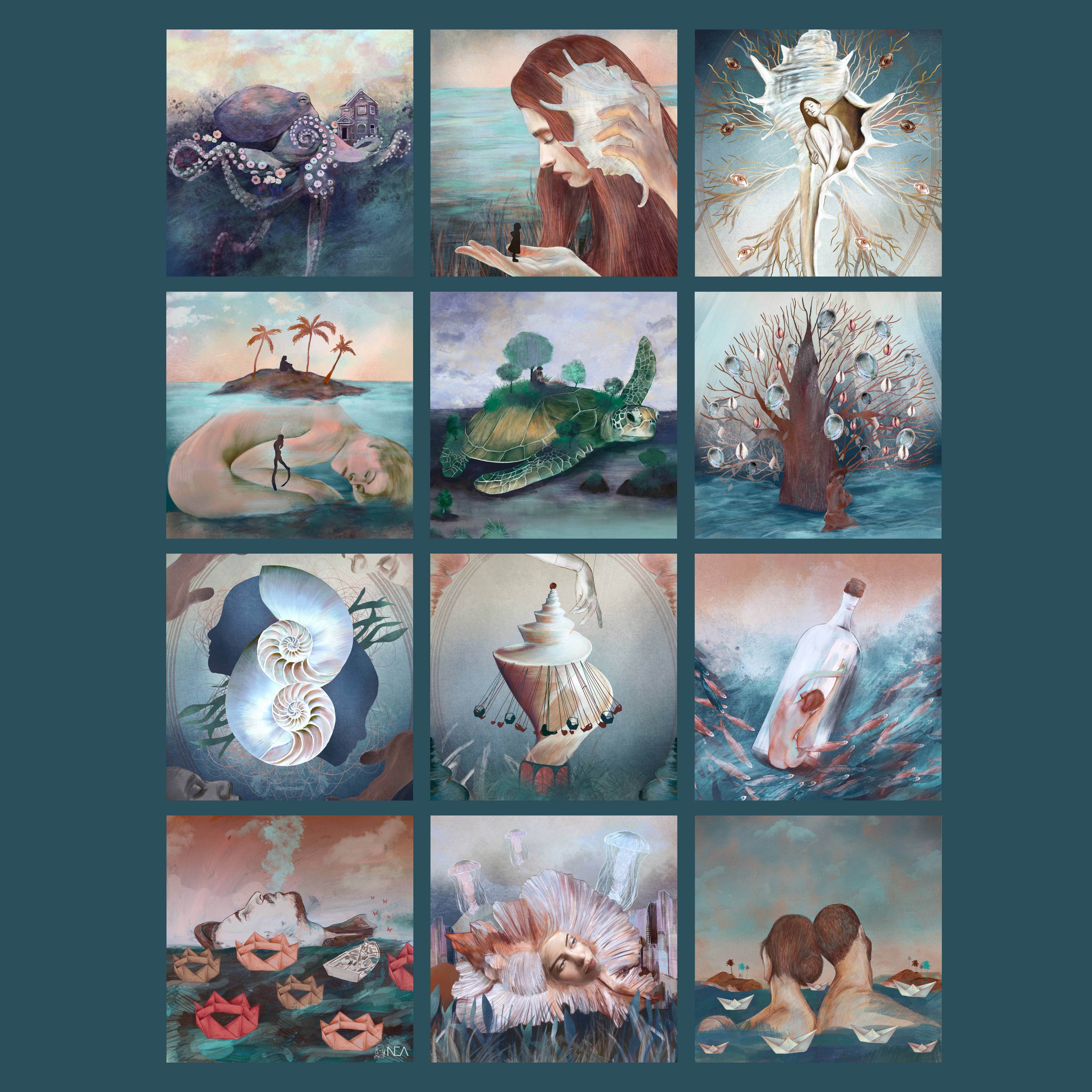 Velik, 13 listni koledar z upodobitvijo morskih motivov, ki ga izdajam ob 10. obletnici ilustriranih koledarjev.